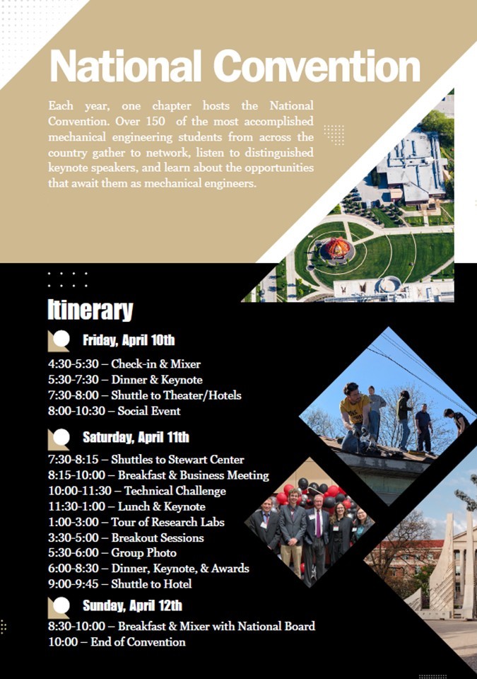 The Purdue University Beta Chapter of Pi Tau Sigma is thrilled to host the National Convention from April 10-12, 2026.